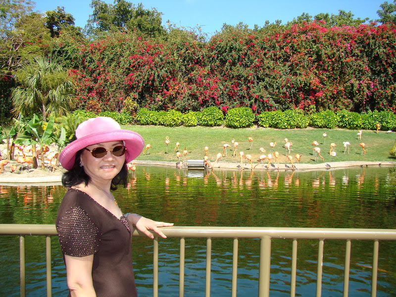 Cuối tuần vừa qua hai vợ chồng tôi đi chơi Miami, tham quan một công viên giải trí nổi tiếng “Parrots Jungle” ở đây, tình cờ gặp một bầy hồng hạc rất đẹp..