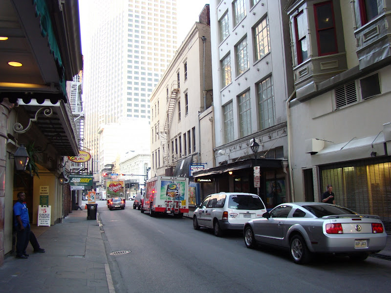 New Orleans là một thành phố kết hợp hai nền văn hóa. Đường Royal trong khu Pháp với nhà cửa cũ kỹ nhìn về phía khu Mỹ (Business district) với nhiều cao ốc chọc trời.