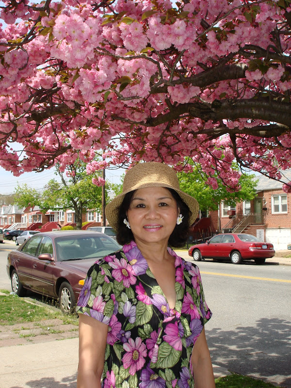 Cây hoa anh đào trước cửa nhà tôi ở New York trổ bông rực rỡ mổi độ xuân về