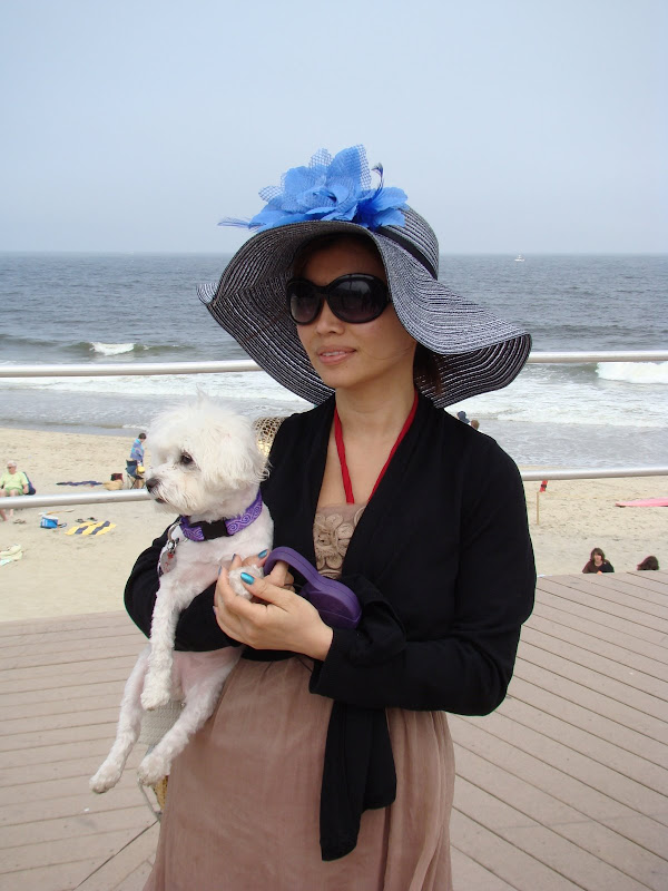Vợ chồng con gái tôi và con chó Sasha đang vui hưởng một ngày nắng ấm tại bãi biển Long Branch
