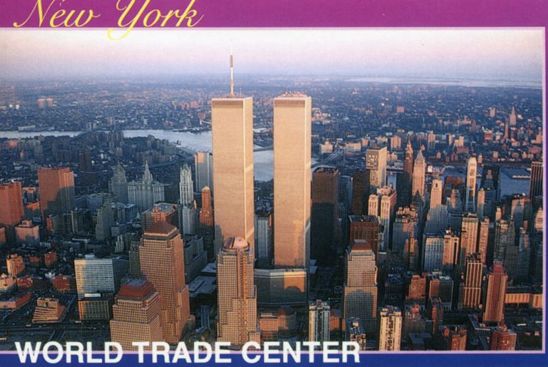 “Trung tâm Thương mại Thế giới (tiếng Anh: World Trade Center, viết tắt WTC; cũng được gọi Tòa tháp đôi), là tên gọi chung của khối bảy tòa nhà trước đây nằm gần cực nam Manhattan, thành phố New York. Trung tâm nổi bật với hai tòa tháp đôi 110 tầng, được kiến trúc sư người Mỹ gốc Nhật Minoru Yamasaki thiết kế và mua lại bởi Larry Silverstein. Khởi công từ 1966 và khánh thành vào 4 tháng 4 năm 1973, nó vượt qua chiều cao của tòa Empire State lịch sử, trở thành tòa nhà cao nhất thế giới chỉ trong một năm, trước khi tòa tháp Sears ở Chicago hoàn tất. Đã từng bị đánh bom vào tháng 2 năm 1993, nhưng nó vẫn đứng vững kiên cố. Tuy vậy nó đã không tránh khỏi sụp đổ gây ra bởi hai chiếc phi cơ Boeing đâm vào, trong những sự kiện ngày 11 tháng 9 năm 2001.”